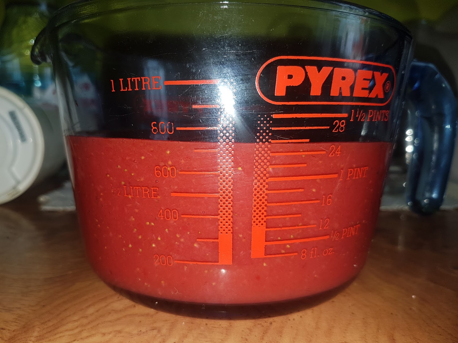 Umyte, obrane owoce wrzucamy do blendera i miksujemy na gładki mus. Czynność powtarzamy, aż uzyskamy 800 ml owocowego płynu.